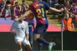 体育资讯05月11日讯 巴萨4-2皇马进入半场,《阿斯报》上半场质疑主裁判判罚,称在亚马尔将比分扳成2-2之前,德容的手球逃过了裁判的法眼,VAR也没有介入审查。