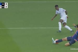 体育资讯05月11日讯 西甲第35轮,巴萨vs皇马。比赛第61分钟,皇马前场2打1!维尼修斯横找姆巴佩被克里斯滕森倒地破坏。