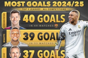下一篇: 本赛季五大联赛新援进球榜:姆巴佩39球居首,吉拉西33球次席