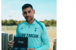 热刺官方社媒晒出罗梅罗领取纪念品的照片,配文:“100次英超出场,祝贺你,罗梅罗!”