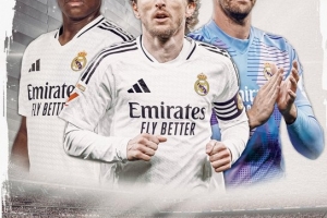海报上,莫德里奇C位,恩德里克和库尔图瓦在他身旁。
