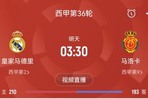 体育资讯05月14日讯 明天凌晨3点30分,皇马主场迎战马洛卡,本场比赛皇马不胜即送巴萨提前3轮夺冠。