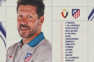 体育资讯5月15日讯 北京时间5月16日凌晨1:00,2024-25赛季西甲联赛第36轮,马竞将客战奥萨苏纳。赛前,马竞官方公布本场比赛球队大名单,阿尔瓦雷斯领衔锋线,德保罗&加拉格尔坐镇中场。