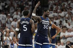 体育资讯5月15日讯 NBA季后赛次轮G5,森林狼主场121-110战胜勇士,总比分4-1淘汰对手。