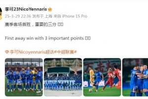 李可用中英文写道:“赛季客场首胜,重要的三分!”