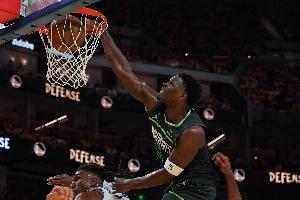体育资讯5月15日讯 NBA季后赛西部半决赛G5,森林狼121-110战胜勇士成功晋级西部决赛。