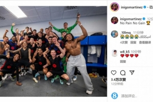 巴萨后卫伊尼戈-马丁内斯此役停赛缺席,他在社媒晒出球员们在更衣室内的合照,配文:“没有付出就没有收获。”