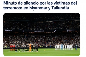 皇马官网写道:圣地亚哥-伯纳乌球场在皇家马德里与莱加内斯的比赛开始前默哀一分钟,悼念缅甸和泰国地震中的数千名遇难者。两队球员都佩戴了袖标。