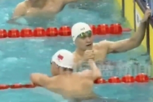 体育资讯5月17日讯 据中国蓝新闻报道,击败孙杨之后,费立纬与这位自己儿时的偶像握手互动。