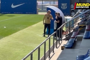 体育资讯5月17日讯 据西班牙媒体《世界体育报》报道,勒夫现身巴萨训练场。