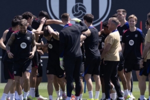 巴萨训练基地今天气氛轻松,在加泰罗尼亚德比战捧起西甲冠军奖杯后,这样的场景再自然不过。全队为对阵比利亚雷亚尔的比赛进行了轻度备战训练,不少球员脸上仍带着夺冠庆典后的倦容。