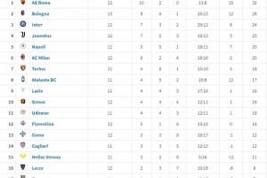 2025年以来,罗马联赛10胜2平,豪取32分最多。博洛尼亚13场拿到28分排名第二,国米12场24分第三。