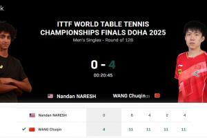 体育资讯05月18日讯 2025多哈世乒赛,男子单打第1轮,王楚钦4-0战胜纳雷什晋级64强。