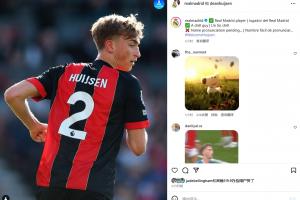 体育资讯5月18日讯 在皇马官宣签下伯恩茅斯后卫怀森后,球员本人也转发了皇马的社媒帖子。
