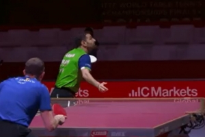 体育资讯5月18日讯 多哈世乒赛男单首轮,伊朗老将阿拉米扬vs罗马尼亚选手约内斯库。