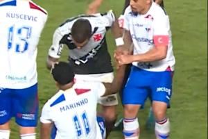 比赛第68分钟,发生了戏剧性的一幕。福塔雷萨球员马里尼奥用肩部顶翻瓦斯科达伽马球员。