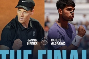 体育资讯5月18日讯 今天晚上23点,ATP1000罗马大师赛决赛,辛纳vs阿尔卡拉斯。