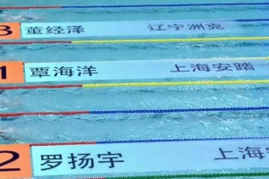 覃海洋第二组出战,游出26秒88,排名小组第一。