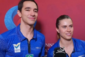 体育资讯5月19日讯 乒乓球世界杯冠军雨果和女友高桥布鲁娜搭档混双参加世乒赛,第一轮顺利晋级。