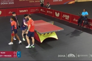 多哈世乒赛混双第二轮,林诗栋/蒯曼对阵法国组合西蒙-高茨/帕瓦德,最终林诗栋/蒯曼3-0(11-4、11-8、11-3)轻取对手,顺利晋级16强。