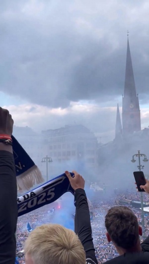 据图片报报道,在当地时间5月19日下午,汉堡进行了游行。有10万球迷参与庆祝。
