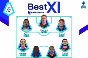 体育资讯5月20日讯 意甲第37轮战罢,联赛官方列出本轮最佳阵容,帕雷德斯、邓弗里斯、佩德罗在列。