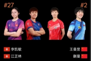 体育资讯5月21日讯 2025多哈世乒赛女双1/8决赛,王曼昱/蒯曼11-6、11-6、11-5战胜李凯敏/江芷林,晋级8强。