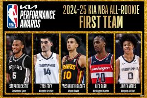 体育资讯05月21日讯 NBA官方公布了本赛季最佳新秀阵容,一阵如下: