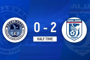 上半场伤停补时2分钟,半场结束,大连英博暂2-0深圳青年人。