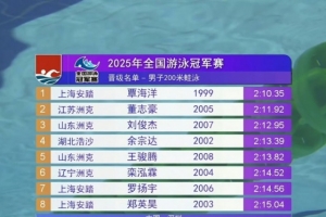 体育资讯5月21日讯 在刚刚结束的全国游泳冠军赛男子200米蛙泳半决赛中,名将覃海洋以2分10秒35的成绩位列第一,成功晋级决赛,董志豪、刘俊杰排名第二和第三。