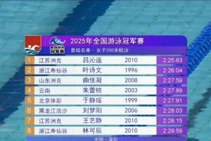 体育资讯5月21日讯 在刚刚结束的全国游泳冠军赛女子200米蛙泳半决赛中,15岁小将吕沁遥2分25秒63排名第一,这一成绩也达到了世锦赛A标。