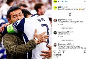 据外媒“433”报道,在夺冠后孙兴慜走到场边,与自己的父亲孙雄正紧紧相拥。