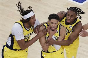 今天,步行者的内史密斯在最后一分钟轰进3个三分,另加哈利伯顿压哨踩线的长两分拖进加时,最终逆转战胜尼克斯,致敬球队的传奇!