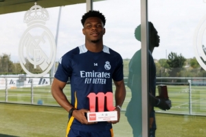 四月份,琼阿梅尼参加了皇马8场比赛中的7场,并打入两球,凭借出色表现被评为月度最佳,值得注意的是,他在三月份也被评为最佳球员。