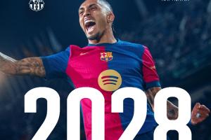 官方公告:“巴塞罗那俱乐部与拉菲尼亚达成续约协议,他将与俱乐部续约至2028年6月30日。”