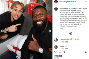 吕迪格:感谢你,与你并肩作战是我莫大的荣幸!多么辉煌的职业生涯,多么伟大的人格!你是足坛有史以来最出色的中场之一,我会非常想念你,不仅是球场上的战友,更是生活中的朋友。向我们伟大的传奇致敬!