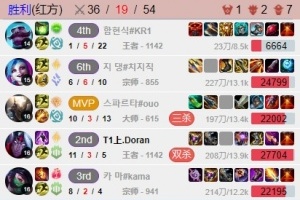 体育资讯5月23日讯 近日Doran在韩服狂玩上单豹女,昨日赛后Doran韩服操刀韦鲁斯,砍下11-3-5的华丽战绩。