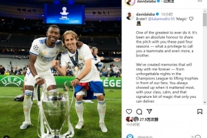 体育资讯5月23日讯 马官方宣布,莫德里奇将在世俱杯之后离队,阿拉巴社媒发文致敬。