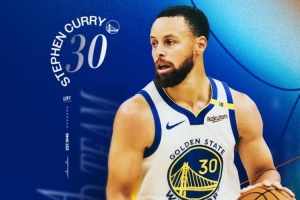 勇士官方制作海报祝贺库里入选最佳二阵,官推写道:“继续加油30号!”