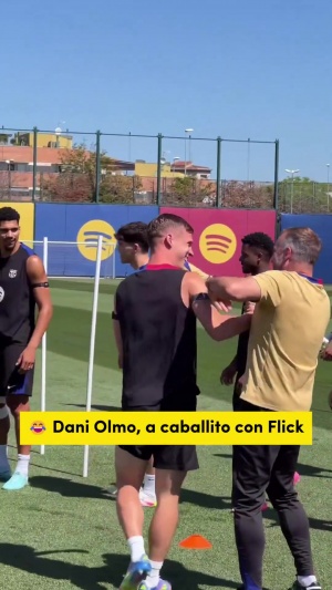 本赛季最后一节训练课,27岁的奥尔莫被60岁的弗里克背着进入训练场。