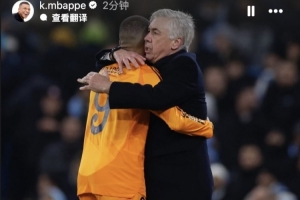 姆巴佩更新社交媒体晒照发文告别安切洛蒂。
