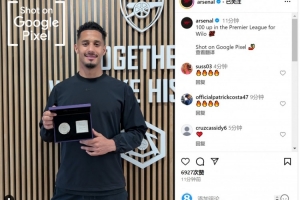 此役是萨利巴出战的第100场英超比赛,他获赠纪念品,阿森纳官方社媒晒出萨利巴领取纪念品的照片,祝贺他达成里程碑。