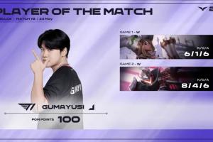 体育资讯5月24日讯 在刚刚结束的LCK比赛中,Gumayusi两局合砍14/5/12的战绩,拿下T1对阵DNF系列赛MVP。