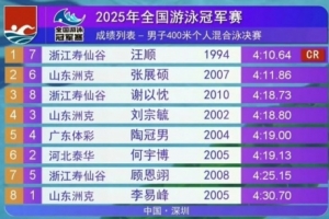 体育资讯5月24日讯 在刚刚结束的全国游泳冠军赛男子400米混合泳决赛中,名将汪顺破赛会纪录夺冠。