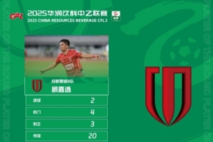 体育资讯5月24日讯 梅开二度的成都蓉城B队球员顾嘉逸当选中乙联赛第10轮最佳球员。