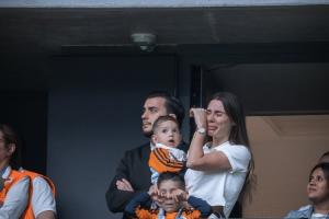 皇马中场巴尔韦德妻子米娜社媒晒出照片和视频,自己和孩子在看台上动情落泪。