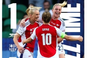 体育资讯5月25日讯 女足欧冠决赛,阿森纳1-0击败巴萨,捧起欧冠奖杯。