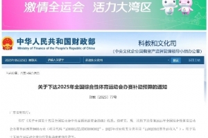体育资讯5月25日讯 据媒体人付政浩报道,在财政部2025年全国综合性体育运动会办赛补助预算中,拨付了9000万元作为全运会足球项目经费补贴。