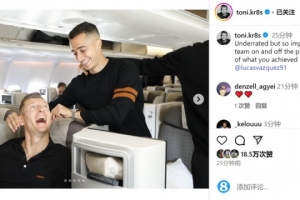 体育资讯5月25日讯 皇马名宿克罗斯更新社媒动态,致敬即将离开皇马的老队友巴斯克斯。