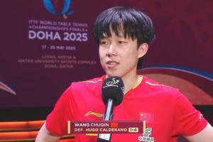 王楚钦:首先再一次对阵雨果,再一次是三大赛,这一次是决赛,昨天他也有非常精彩的发挥,包括他也是最新的世界单打冠军。所以自己面对这场决赛的时候,把自己当做挑战者的心态去面对,不论是对于国家还是乒乓球队,我都是抱着强烈的求胜欲望,做到了我非常开心。